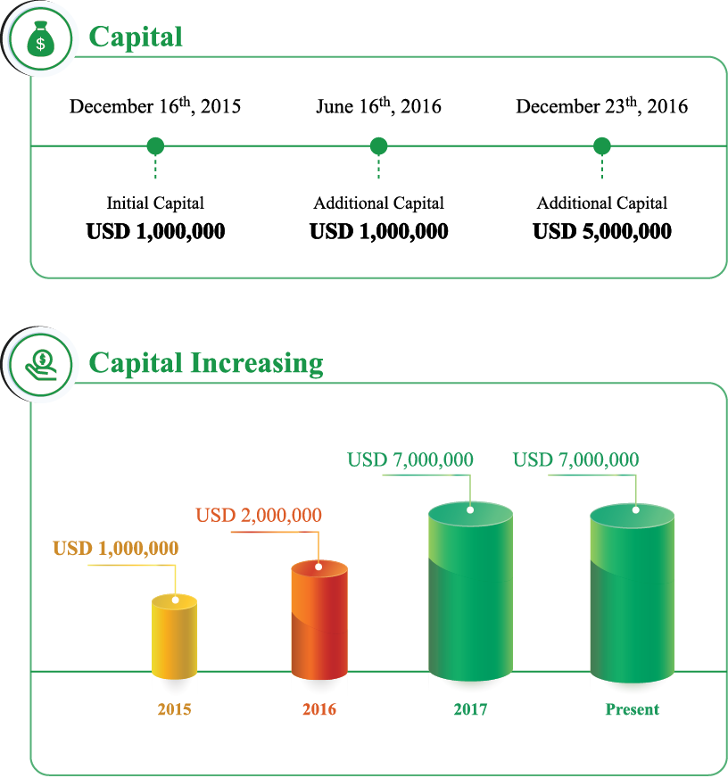 At the beginning of 2016, FUTABA Microfinance Plc, started its business operation with the only initial capital of US$1,000,000. However, with the strong support from customers, it was showing that FUTABA Microfinance Plc, got a great successful achievement. Meanwhile, since 2016, AZUMA & Co., Ltd., has become a shareholder of FUTABA Microfinance Plc, AZUMA & Co., Ltd., a Japanese Company, has parallel concept in supporting and improving living standard of Cambodian people, especially to contribute to developing new generations by providing highly effective financial service with quality, consistency, and transparency of the market.