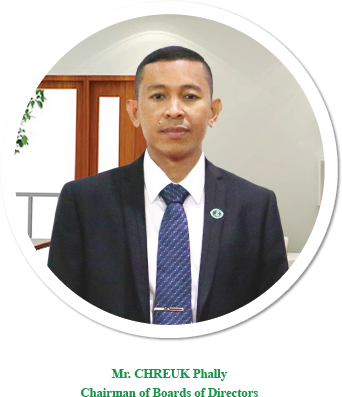 On behalf of the Chairperson of Board of Directors, I would like to thank to our customers who continue to use the institution's services and products in good faith to contribute to the development of businesses and resources for future generations in the Kingdom of Cambodia, especially our Japanese shareholder who always provide financial support, as well as Chief Executive Officer, Deputy Chief Executive Officer, managements and all staffs of FUTABA Microfinance Plc., for much contribution, work hard, and support to implement and achieve of business strategic as provided by the Institution's Board of Directors. Especially, I would like to express my deepest gratitude to thank the National Bank of Cambodia, relevant ministries, and corporate partners who always provide cooperation, support, and recommendations to our Institution on some additional shortcomings to strengthen the implementation and review and manage all work activities more effectively and transparently until now and in the future.